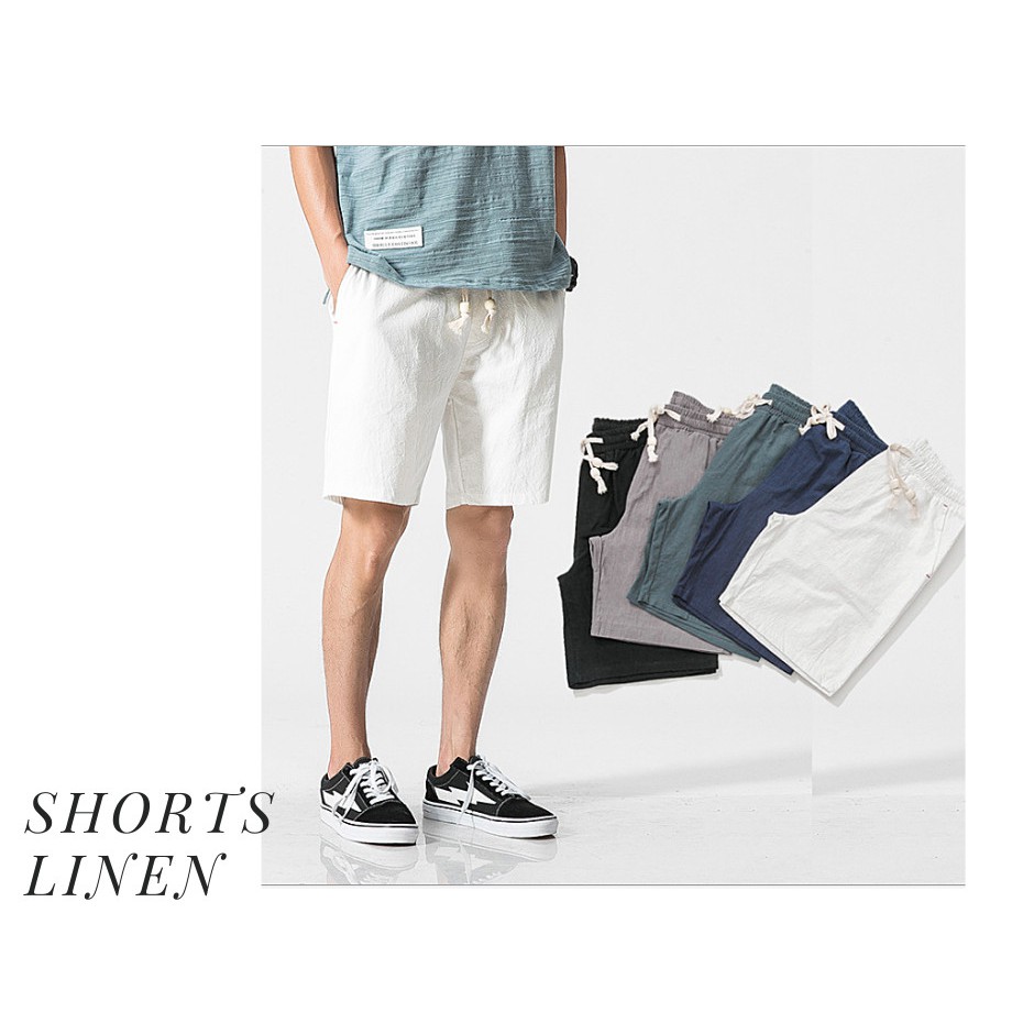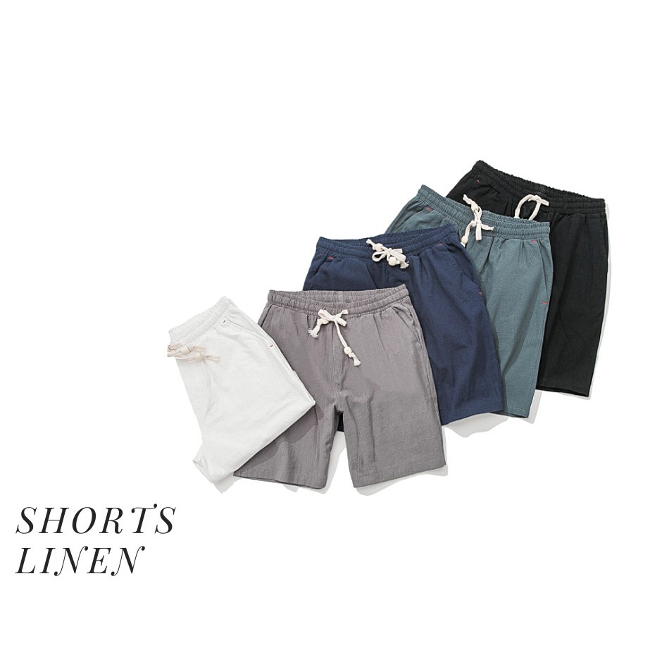 Quần ngắn shorts ngang gối linen chất liệu đũi màu trắng đen dài ngang gối của Hung Tubes.