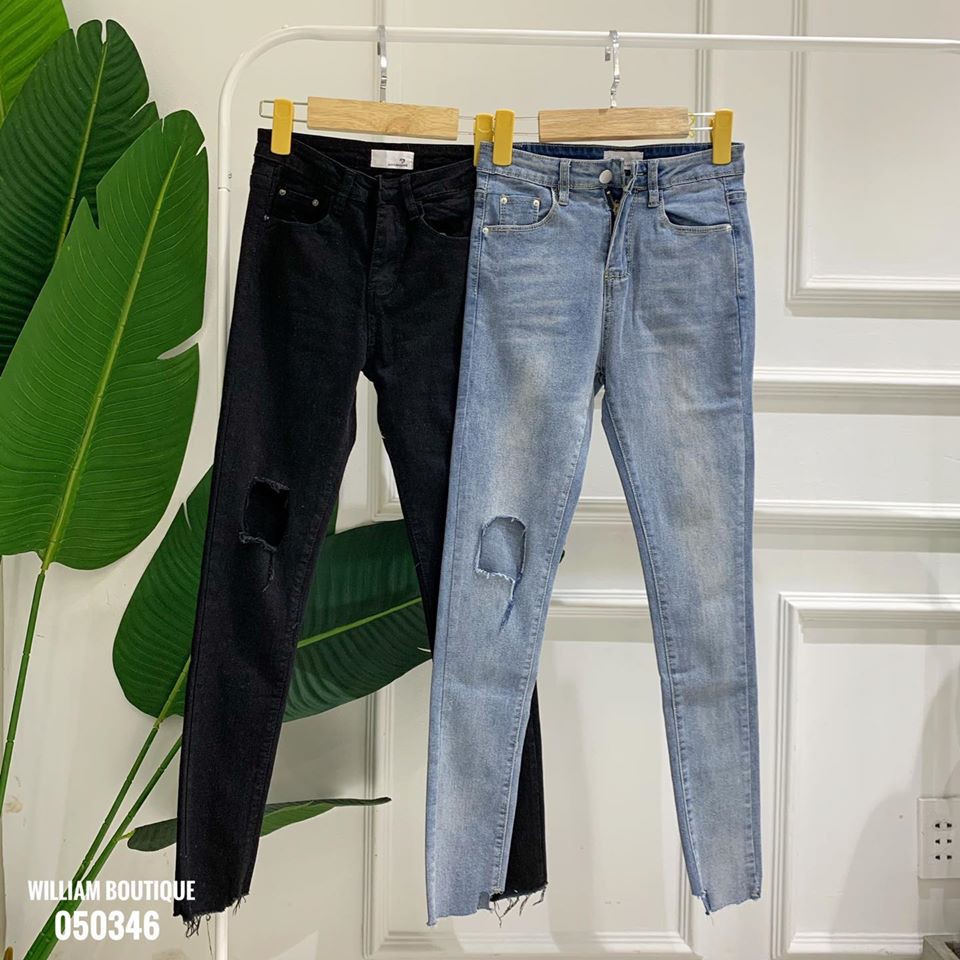 Quần jean skin rách gối, có thể phối với nhiều loại trang phục, form đẹp, ôm chân tôn dáng lắm nha các nàng ^^. Mã: 050346