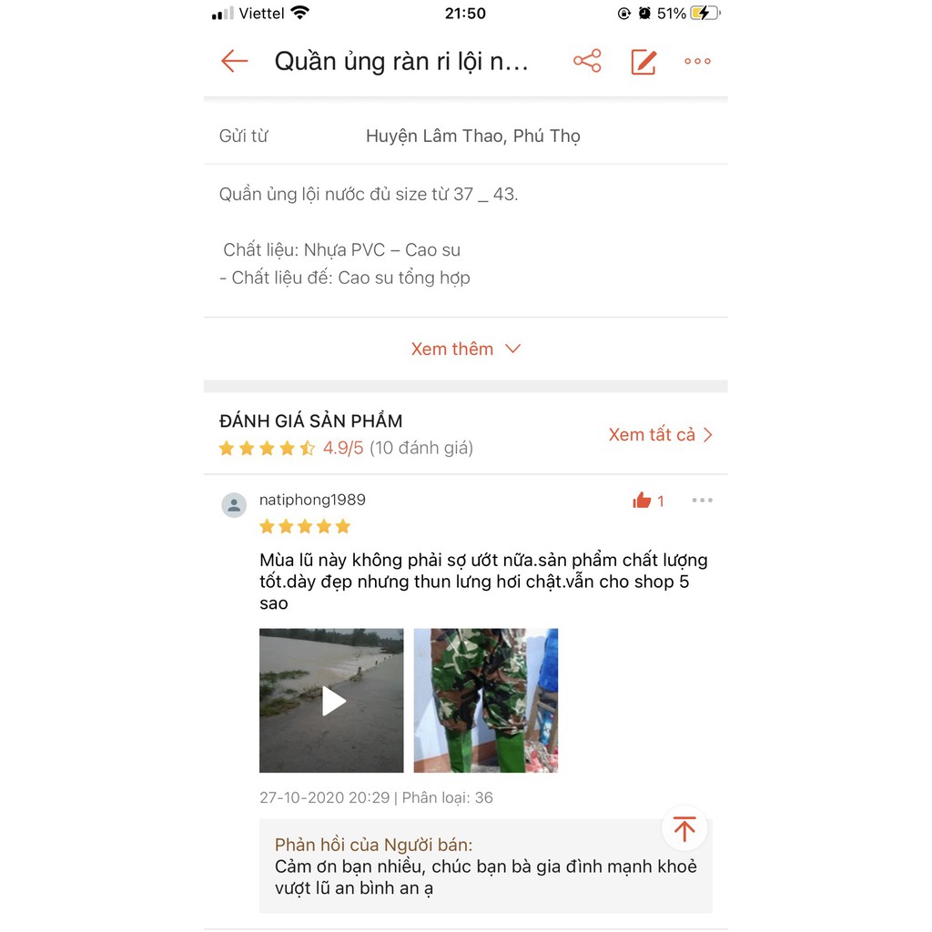 1) Ủng quần ràn ri Hoa San- Hàng chính hãng, ảnh và video tự tay shop quay chụp ạ