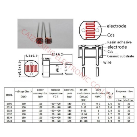 Giới thiệu Quang Trở CDS/Cảm Biến Ánh Sáng 5MM 5537/12MM 12528