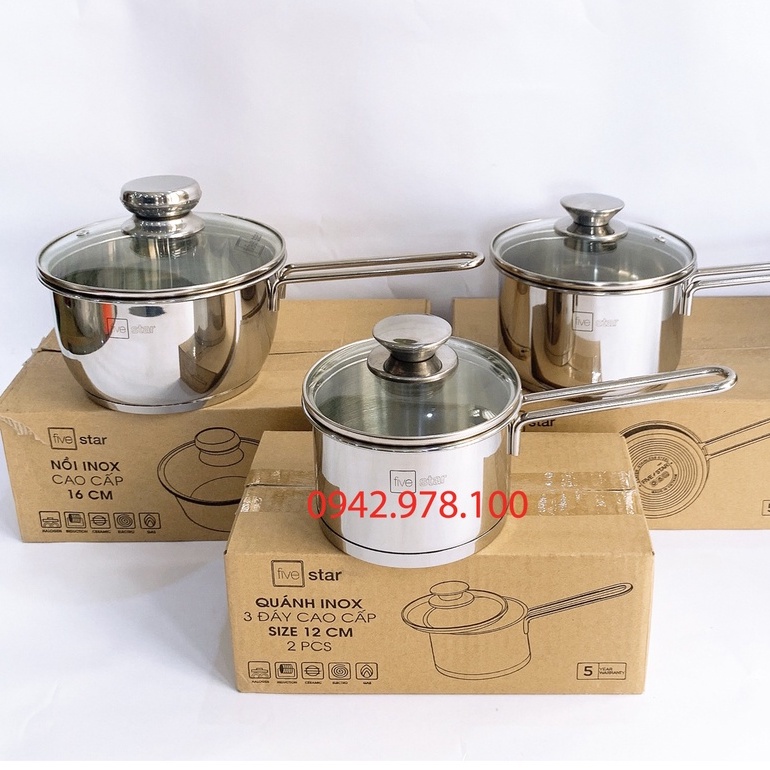 Nhà cửa & Đời sống > Dụng cụ nhà bếp > Nồi || Quánh bột cháo 3 đáy inox 430 Fivestar Standard nắp kính dùng bếp từ (14cm)Còn hàng