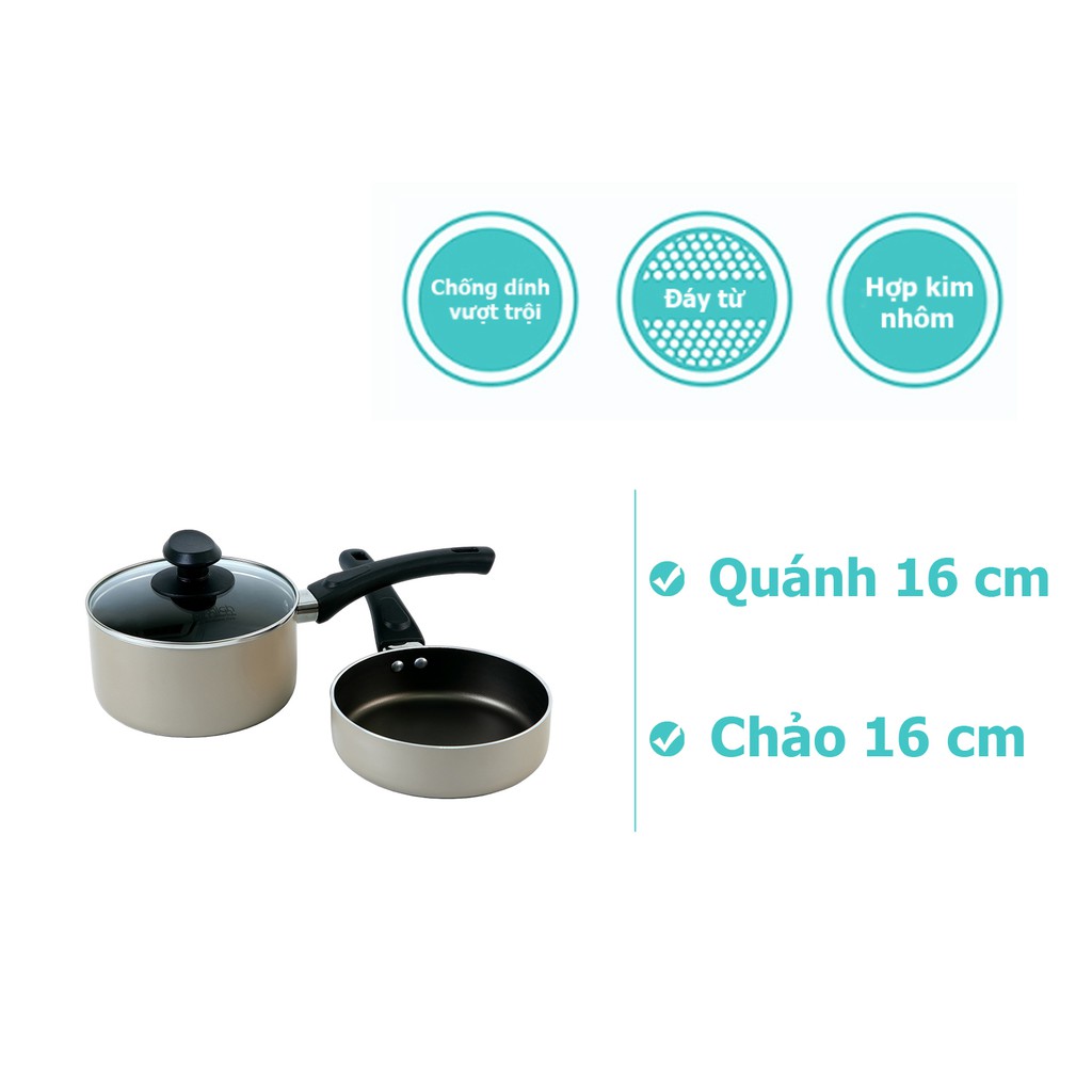 Bộ quánh chảo 2 cái chống dính Whitford cao cấp, đáy từ, size 16cm Elmich Baby EL-1167