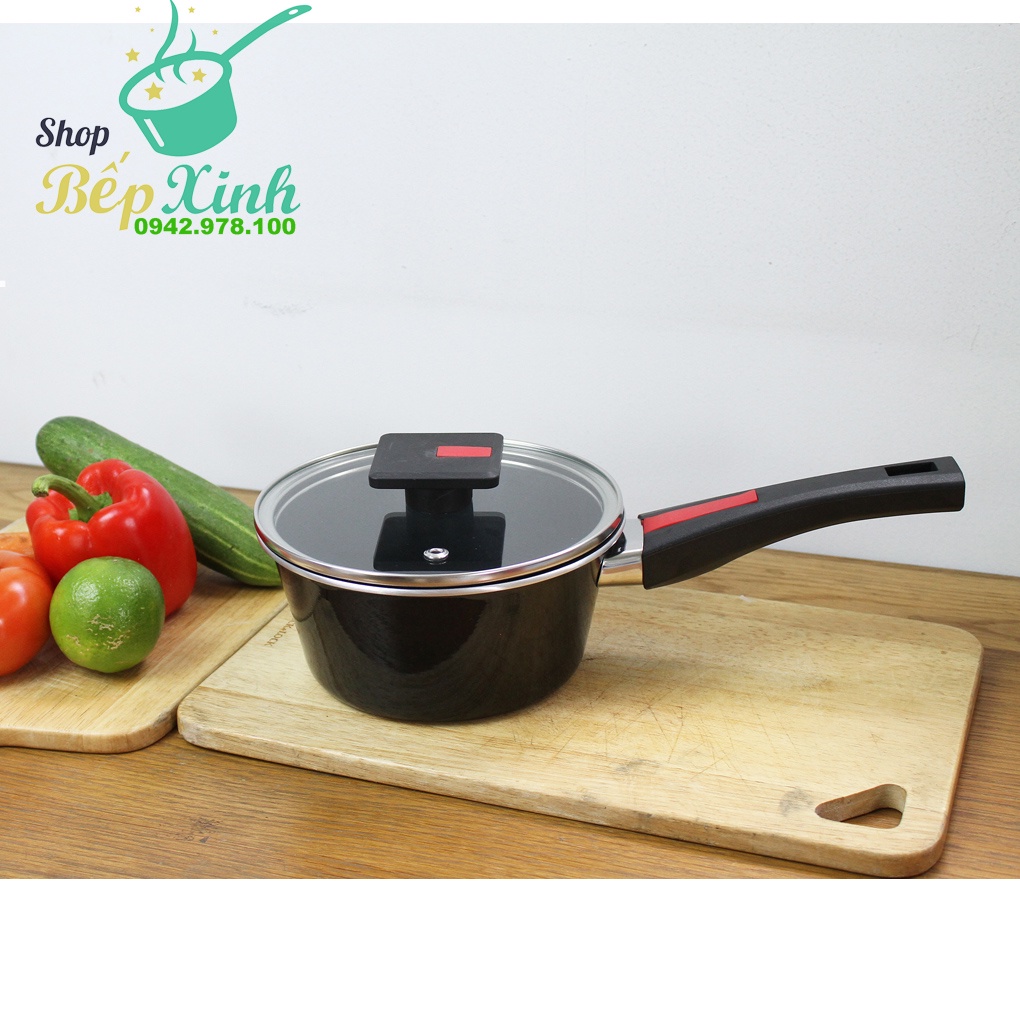 #quánh-chống-dính bếp từ KIMS COOK 16cm nắp kính rất được sự tin tưởng của các đầu bếp nổi tiếng trên thế giới, tay cầm bằng nhựa BAKELITE cách nhiệt và chắc chắn