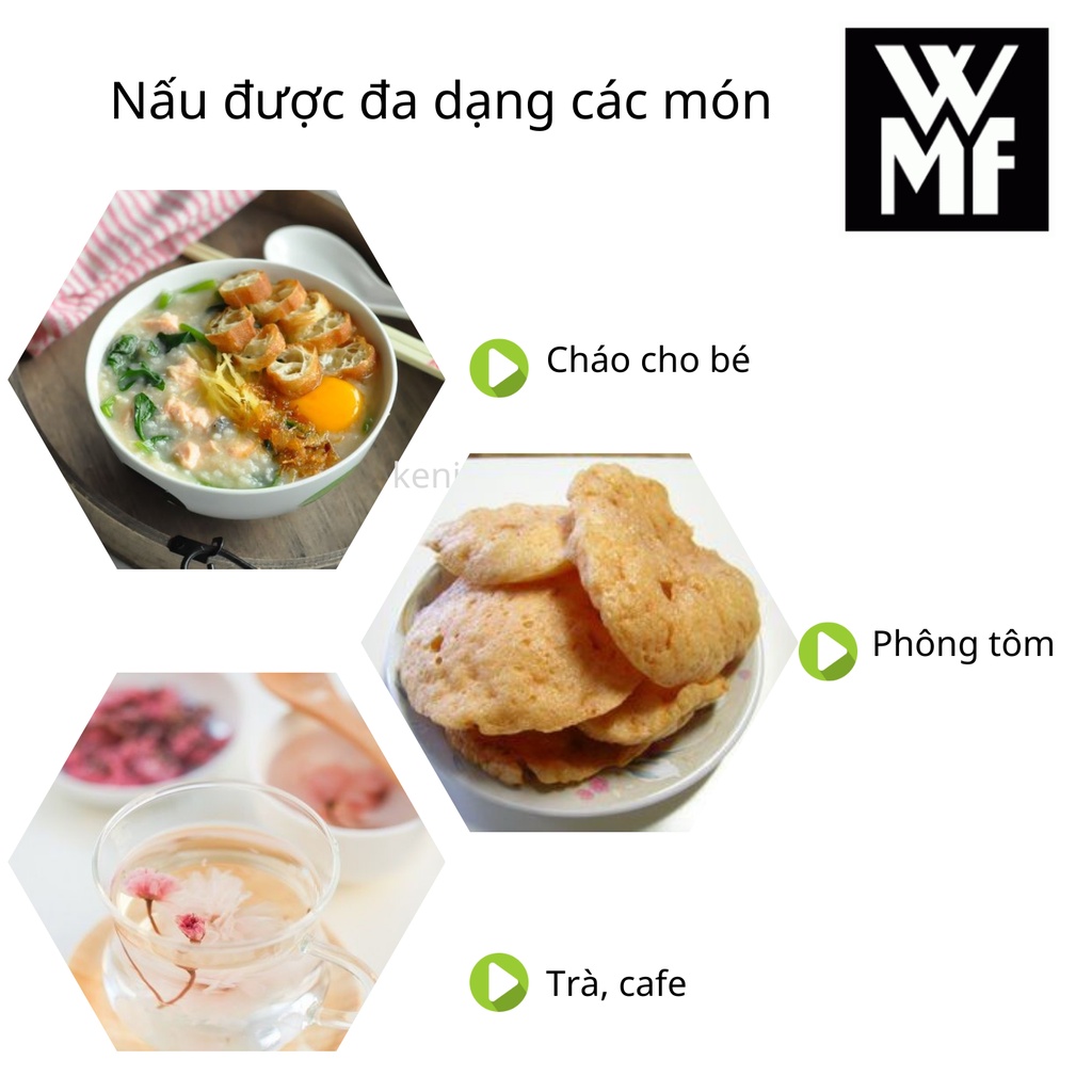 - Đặc biệt quánh chống dính bếp từ WMF có thể được làm sạch trong máy rửa chén và phù hợp với mọi nguồn nhiệt, kể cả bếp cảm ứng.