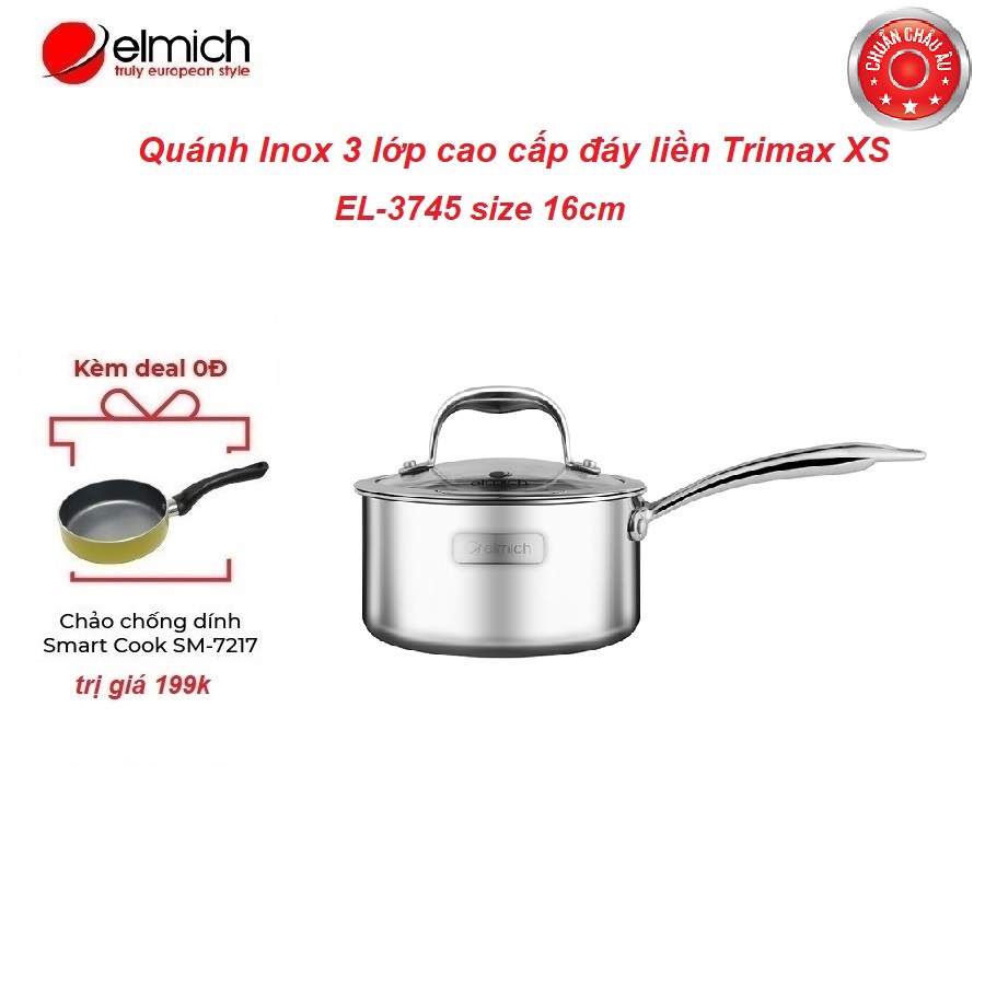 Nhà cửa & Đời sống > Dụng cụ nhà bếp > Nồi || [Mã LIFEMALL2503 giảm 15% đơn 99K] Quánh Inox 3 lớp cao cấp đáy liền Trimax XS EL-3745 size 16cmCòn hàng