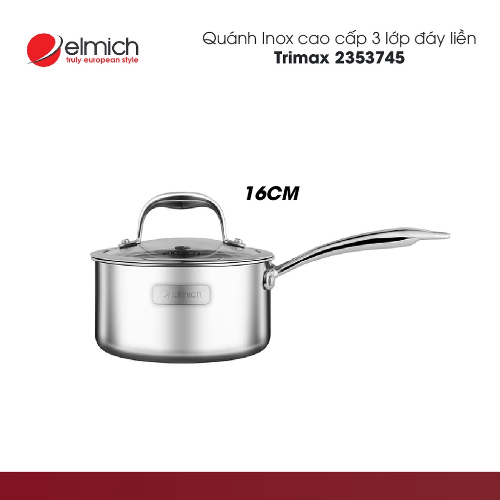 Quánh inox 3 lớp cao cấp đáy liền Elmich Tri-max XS EL - 3745 size 16cm | Hàng Chính Hãng | 2353745