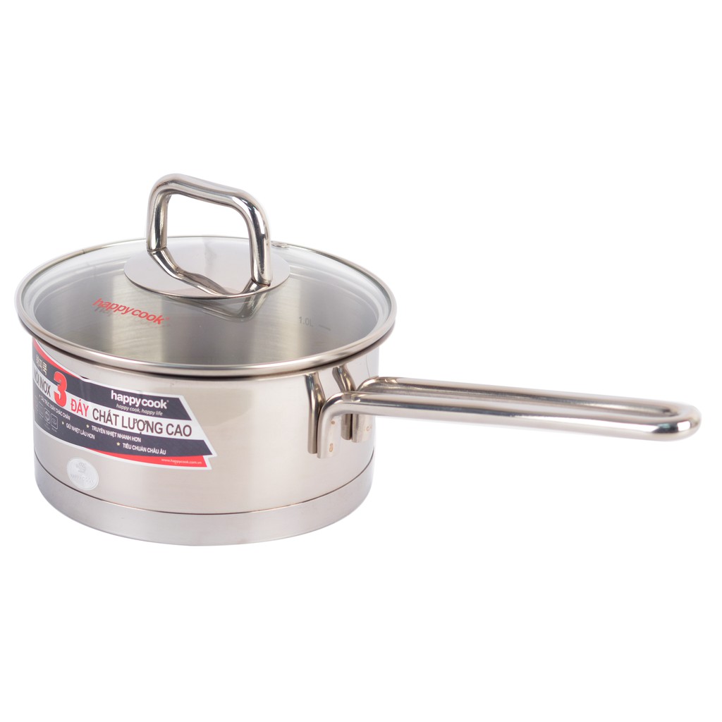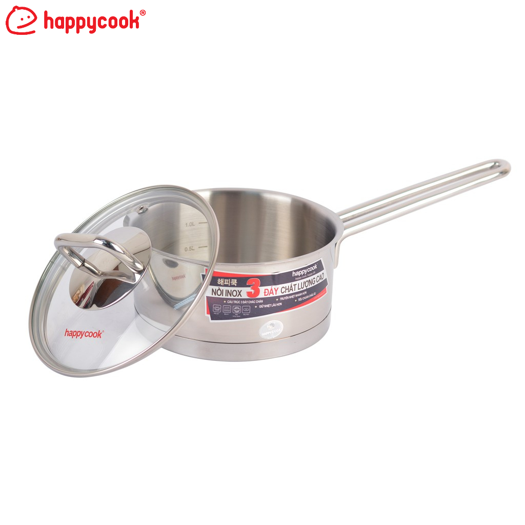[Mã BMBAU50 giảm 7% tối đa 50K đơn 99K] Quánh Inox 304 Bếp Từ Nắp Kính Cao Cấp 16cm Happy Cook Novelty Q16-NV