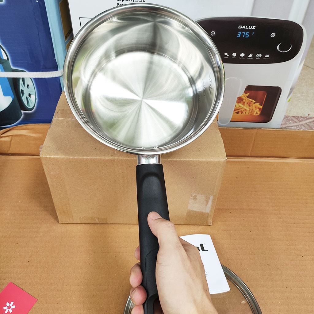 Chất Liệu: toàn thân làm bằng inox 304, tay cầm nhựa BAKELITE chống nóng, nắp thủy tinh