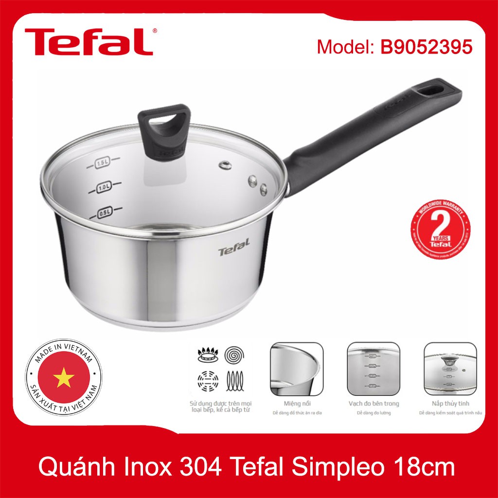 Quánh Inox 304 đường kính 18cm Tefal Simpleo B9052395 hàng Việt Nam xuất Pháp, bảo hành 5 nămThương Hiệu: Tefal