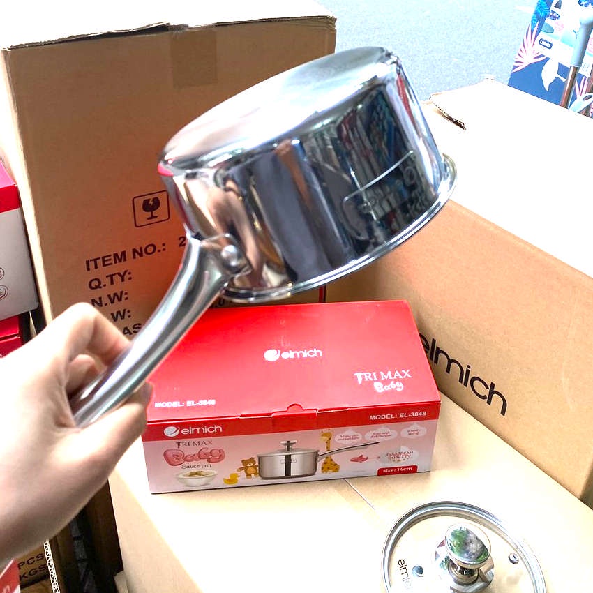 Nhà cửa & Đời sống > Dụng cụ nhà bếp > Nồi || Quánh inox 304 thân đúc đáy liền Elmich Trimax Baby EL-3848 đường kính 14cm vung kính đáy từ bảo hành 12 thángCòn hàng