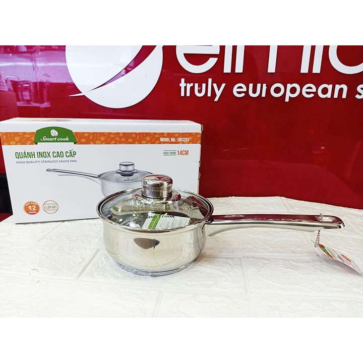 Giới thiệu Quánh Inox đường kính 14cm Elmich Smartcook SM3283 vung kính - Hàng chính hãng, bảo hành 12 tháng