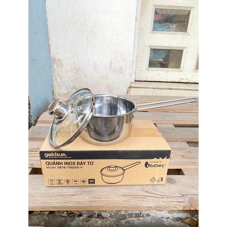 Quánh inox Goldsun đáy từ vung kính 14cm