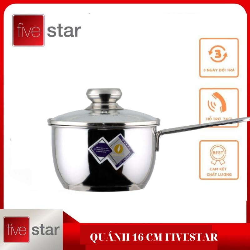FiveStar là công ty chuyên cung cấp các nồi inox, bộ nồi inox, xửng hấp inox theo tiêu chuẩn của Châu Âu. Với phương châm hàng đầu là "Sự hài lòng của khách hàng - Là thành công của chúng tôi" FiveStar đã cho ra đời nhiều thiết bị nhà bếp có chất lượng cao được người tiêu dùng tin dùng, FiveStar Quánh Inox 430 có 3 đáy nắp kính 16cm là một trong những dòng sản phẩm đó.