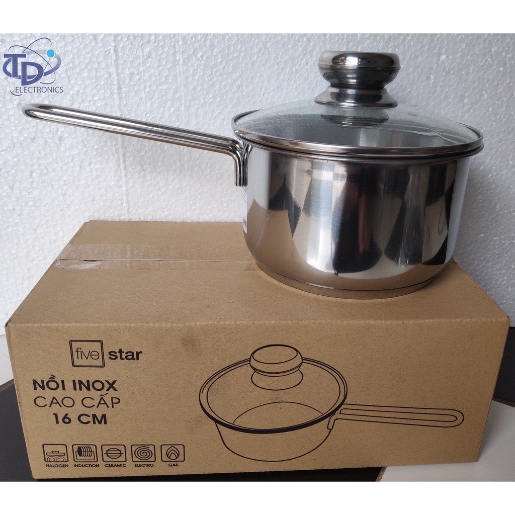 Nồi quanh inox Fivestar có đường kính 16 cm, thích hợp nấu cháo, nấu bột cho trẻ em…