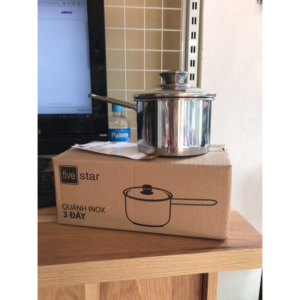 - Tên sản phẩm: Nồi quánh nấu bột Inox 3 đáy 14cm Five Star nắp kính dùng được trên bếp từ.