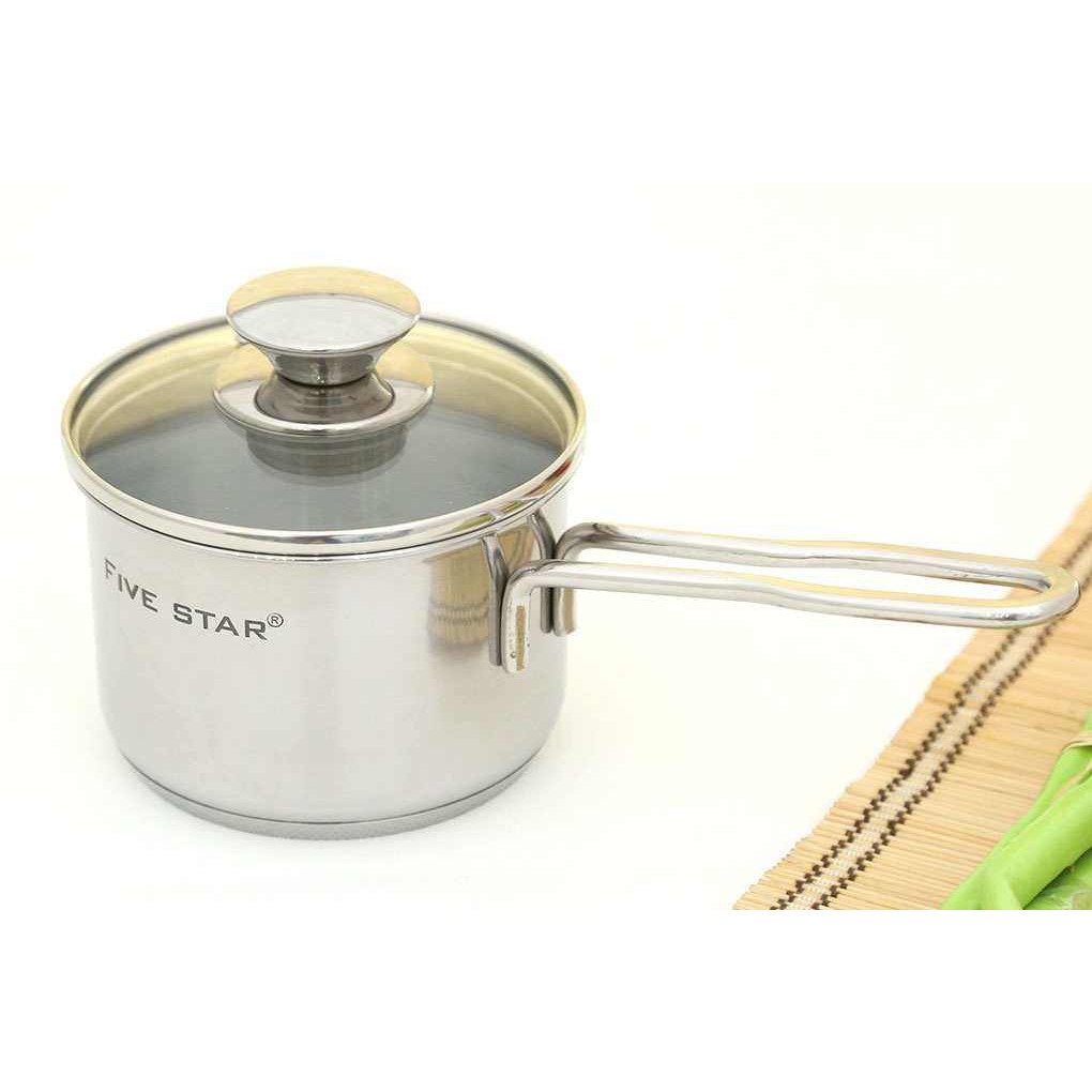 Quánh nấu bột Inox 3 đáy 12, 14, 16 cm Fivestar nắp kính dùng bếp từ