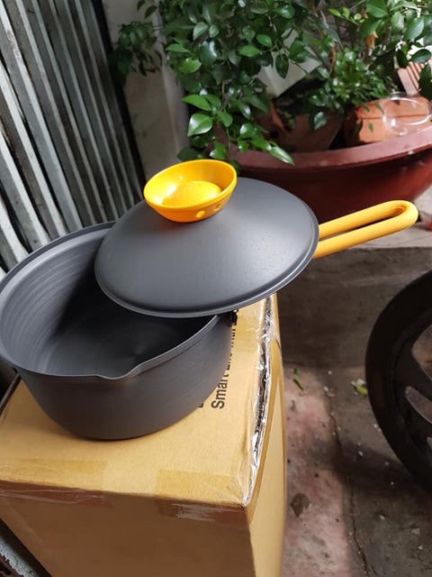 - Nồi có nắp cầm màu vàng, thiết kế độc đáo có thể lật ngược lại để đựng thức ăn như một cái cái bát to, bên cạnh đó là 2 lỗ tròn nhỏ để bạn có thể gài đũa trong quá trình nấu nhằm giữ vệ sinh và tránh thất lạc.