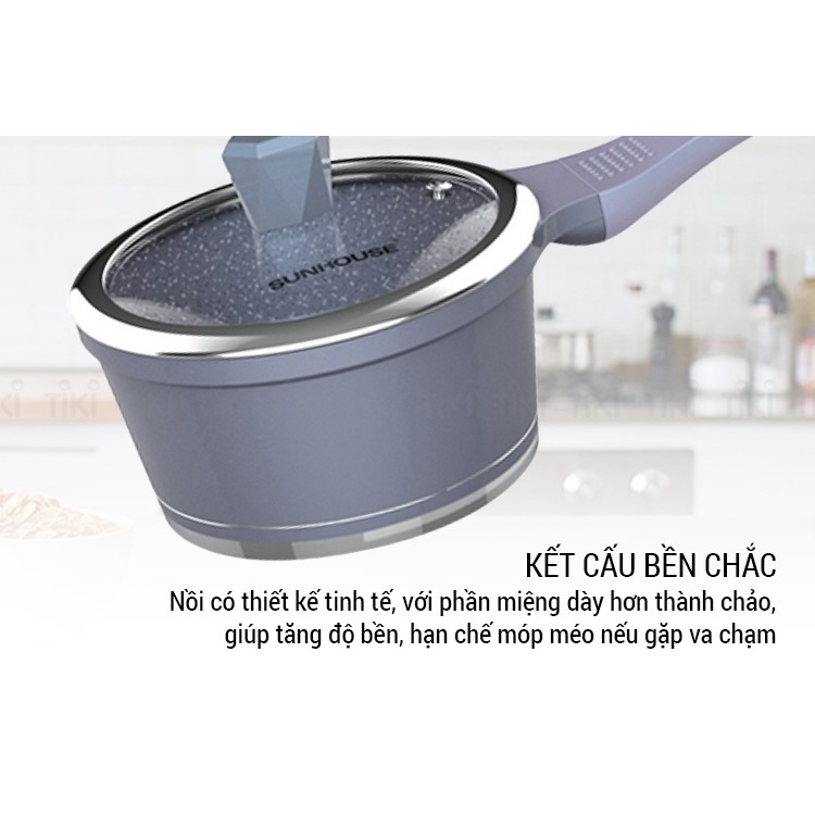 Quánh Vân Đá Đáy Từ Sunhouse Mama SHG3116MMA chất liệu cao cấp: Nồi được làm từ nhôm đúc nguyên khối siêu bền, có khả năng chống va đập cực tốt. Chất liệu nhôm còn có khả năng dẫn nhiệt tốt, tỏa nhiệt đều giúp món chiên xào được ngon hơn.