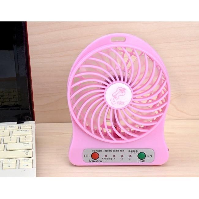 Quạt được trang bị 1 pin sạc dung lượng 3.7V có thể hoạt động liên tục trong nhiều giờ liền, khi hết pin có thể sạc lại dễ dàng thông qua cổng USB của máy tính.