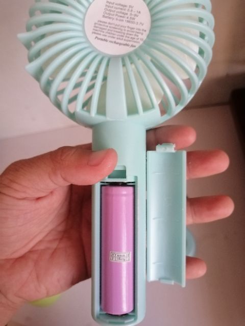 quạt cầm tay 3 cấp độ có đế đứng.quạt cầm tay dùng pin sạc đuôi sạc micro giống điện thoại .