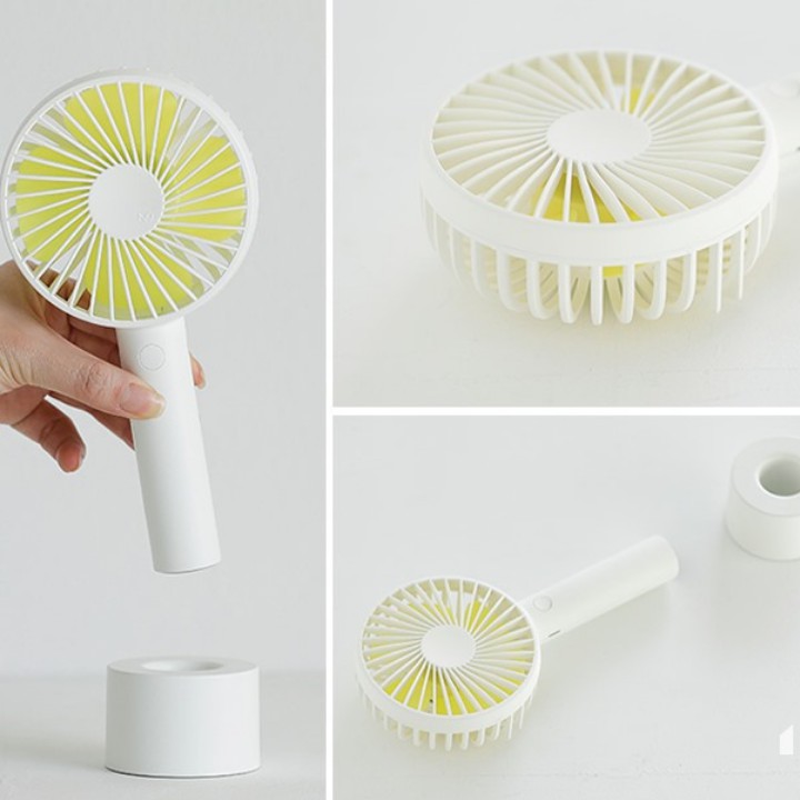 - Sản phẩm quạt để bàn cầm tay rất tiện cho chúng tay khi đi du lịch bởi vì chúng tay có thể bật quạt lên và sở hữu cho mình một làn gió mát và trong lành. Với bộ pin tích hợp cổng sạc USB giúp bạn có thể sạc pin được dễ dàng hơn. - Quạt có ba cấp độ gió với một nút điều khiển rất dễ dàng và tiện lợi cho người dùng.