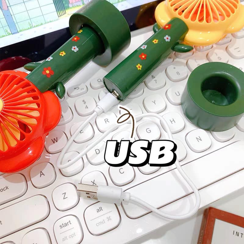 Quạt Cầm Tay Bông Hoa Kèm Dây Sạc USB