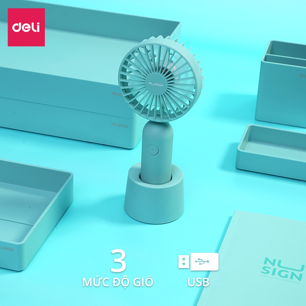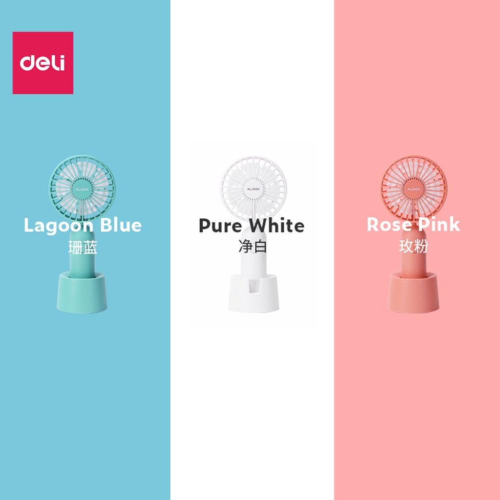 Quạt cầm tay cao cấp Deli - Sạc tích điện USB - Có đế cắm tiện dụng - Trắng/Hồng/Xanh ngọc - 1 chiếc - NS916