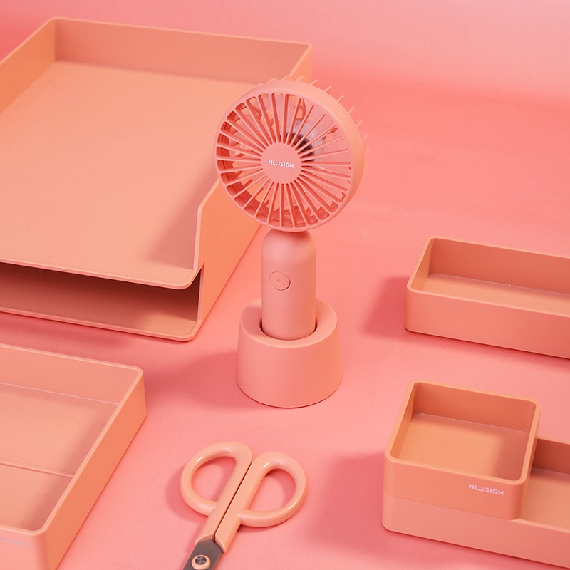 Quạt cầm tay cao cấp Nusign - Sạc tích điện USB - Có đế cắm tiện dụng - Trắng/Hồng/Xanh ngọc - 1 chiếc - NS916