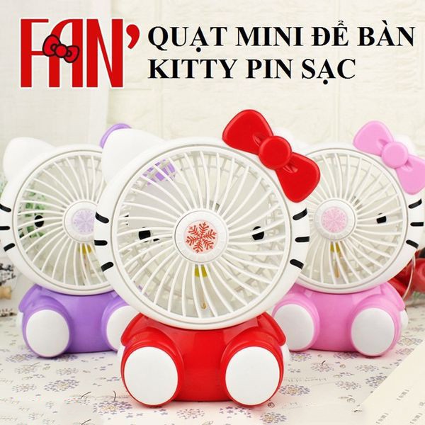 Quạt Cầm Tay Để Bàn Mèo Kitty Siêu Mát Đáng Yêu - Hình thật
