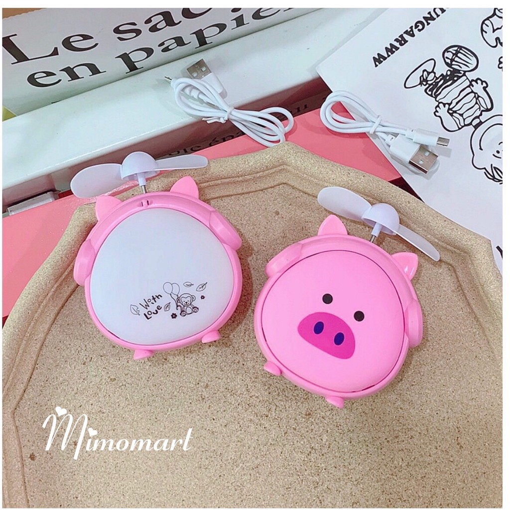 Quạt cầm tay heo hồng cute sạc điện kèm đèn