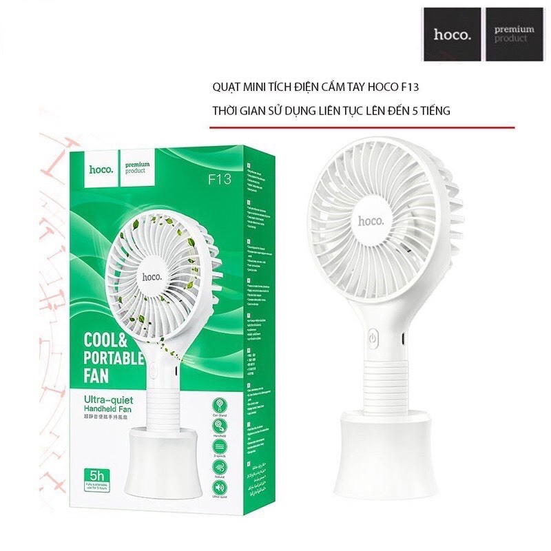 Giới thiệu ✅Quạt cầm tay Hoco F13 điều chỉnh 3 tốc độ, dung lượng 1500mAh, sử dụng 3-5h có giá đỡ tiện lợi tháo rời