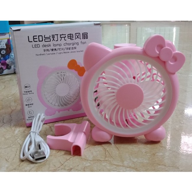 Shop Khangtran31 xin giới thiệu: Quạt cầm tay mèo Kitty LED FAN có đế cắm điện thoại- Quạt có thể hoạt động liên tục trong nhiều giờ liền, khi hết pin có thể sạc lại dễ dàng thông qua cổng USB cốc sạc của điện thoại hoặc cắm qua cổng USB của laptop và máy tính.