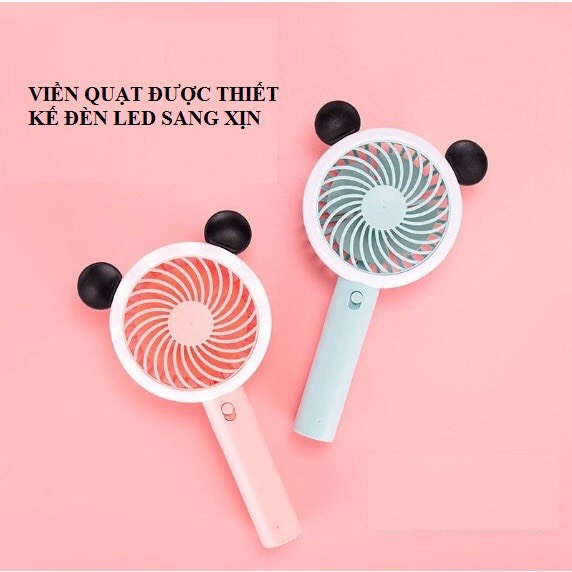 Quạt cầm tay mini 3 Cấp Độ Gió Có Đèn Led - Quạt Tai Gấu Tích Điện Để Bàn Nhỏ Gọn Dễ Thương Nhiều Màu Sắc Không Kèm Sạc