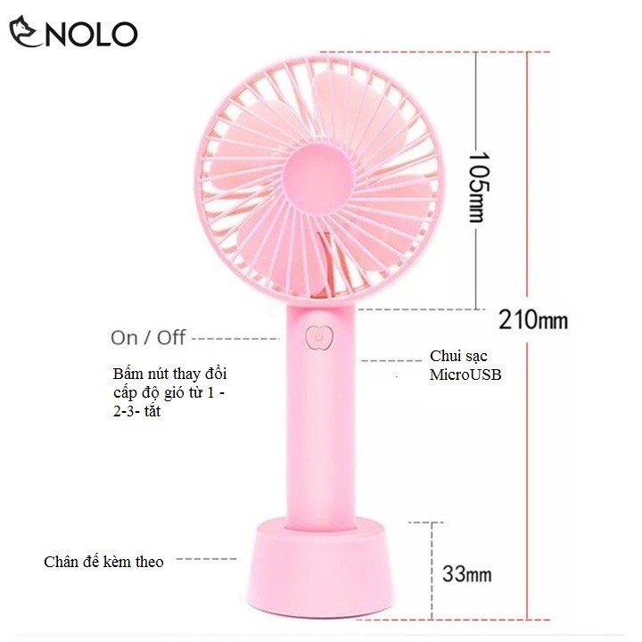 Giới thiệu Quạt Cầm Tay Mini 4 Cánh Pin Sạc Có Đế Để Bàn