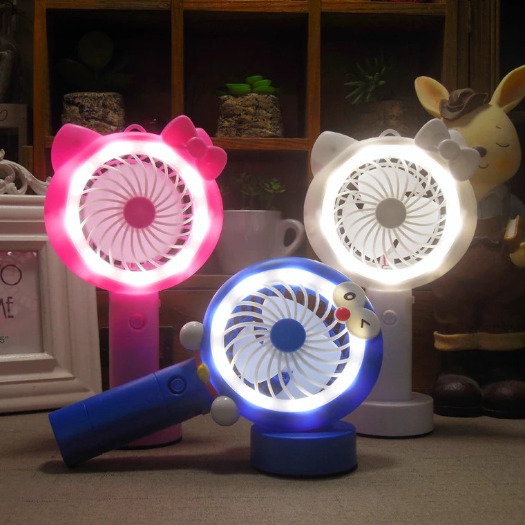 Quạt Cầm Tay Mini Để Bàn Kèm Đèn Led , Nhỏ Gọn, Nhiều Màu Sắc, Cực Mát, Hỗ Trợ Pin Sạc Dùng Cực Lâu
