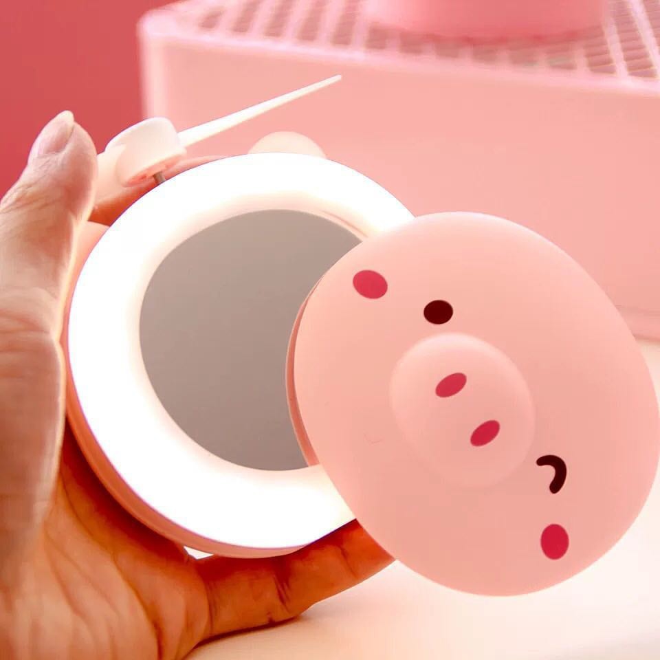 QUẠT CẦM TAY MINI HÌNH CON HEO ĐA NĂNG 3 TRONG 1 CÓ ĐÈN LED CÓ GƯƠNG ĐỂ SOI TIỆN LỢI