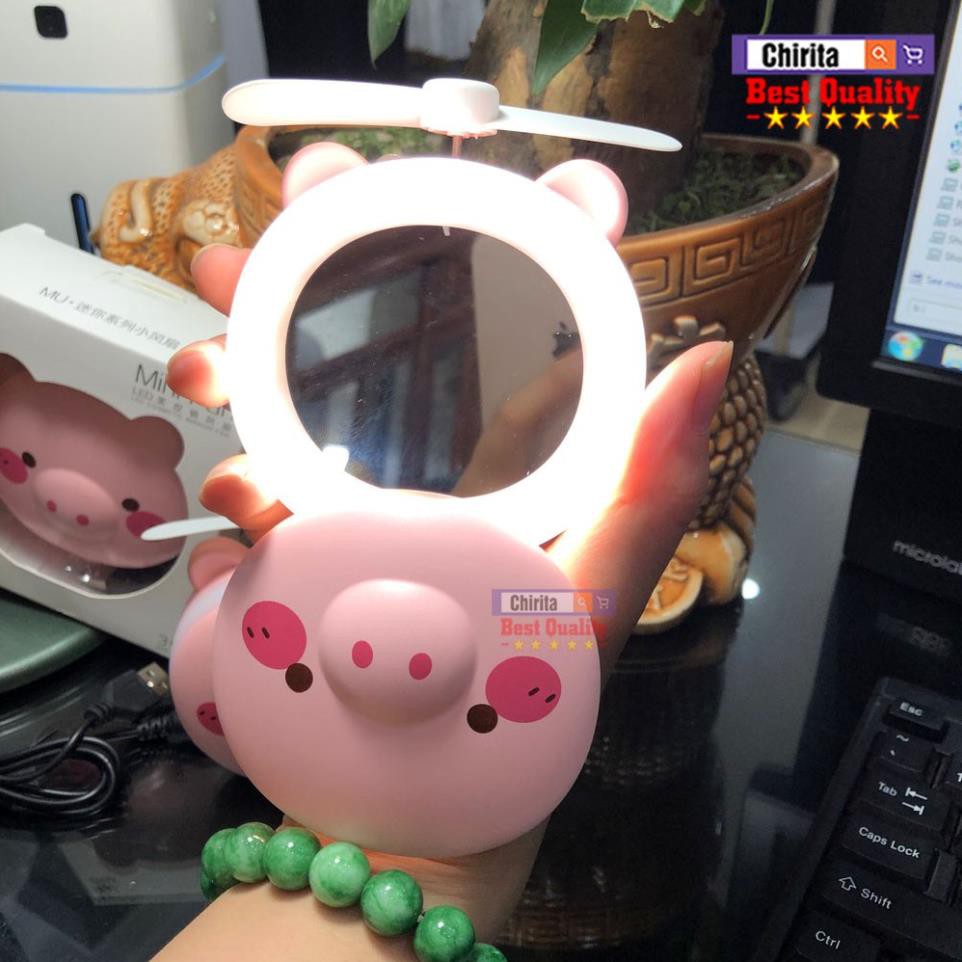 Quạt Cầm Tay Mini Hình Thú Đáng Yêu - 3 In 1 Kèm Đèn Led Và Gương Cao Cấp NO.HC