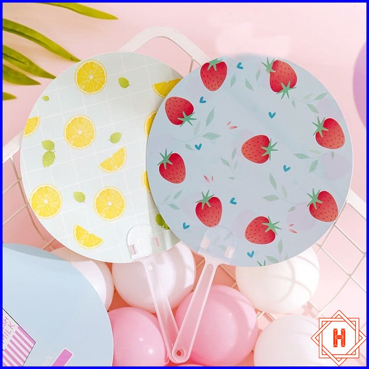 Giới thiệu Quạt cầm tay mini hình tròn bằng nhựa nhiều họa tiết { H }