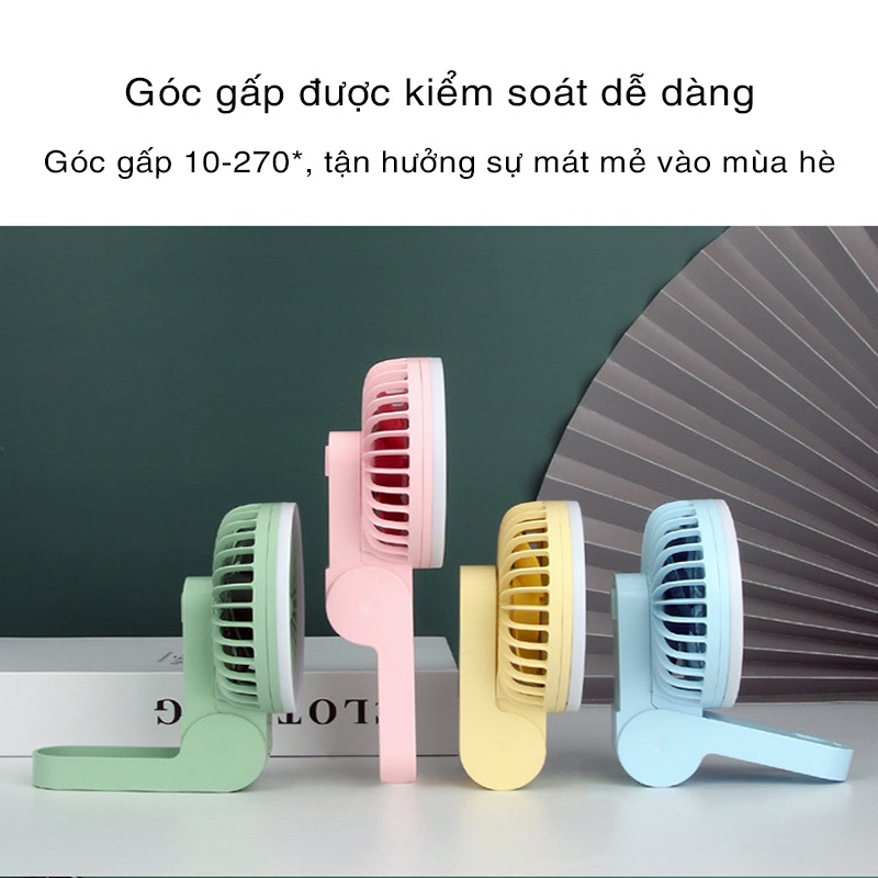 Quạt cầm tay mini MINPRO 3 tốc độ gió có đèn Led, cổng sạc usb, tích điện gấp gọn để bànĐẶC ĐIỂM NỔI BẬT: