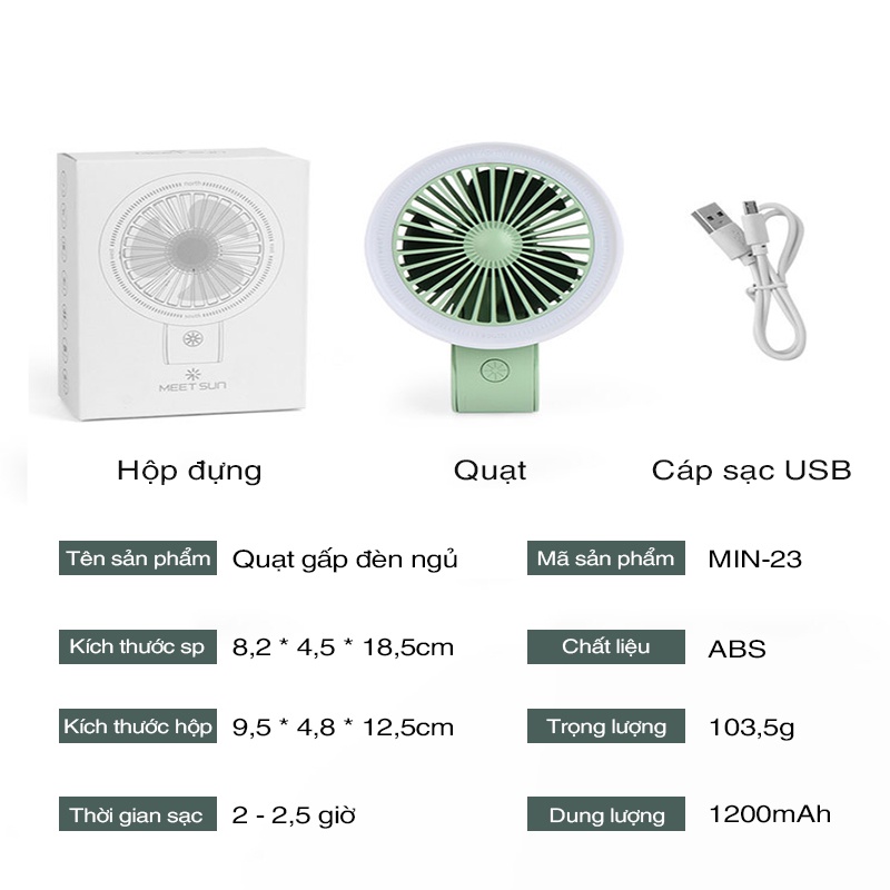 - Tên sản phẩm: Quạt cầm tay mini MINPRO 3 tốc độ gió có đèn Led, cổng sạc usb, tích điện gấp gọn để bàn