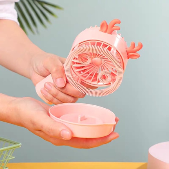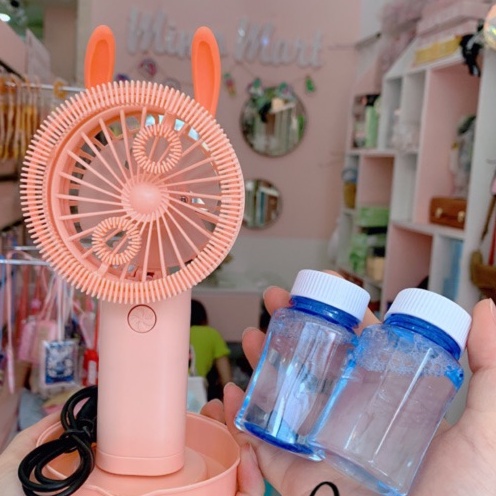 Quạt cầm tay mini, quạt thổi bong bóng, đế để bàn, tặng lọ thổi xà bông