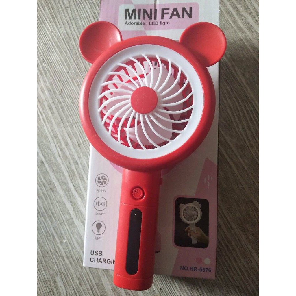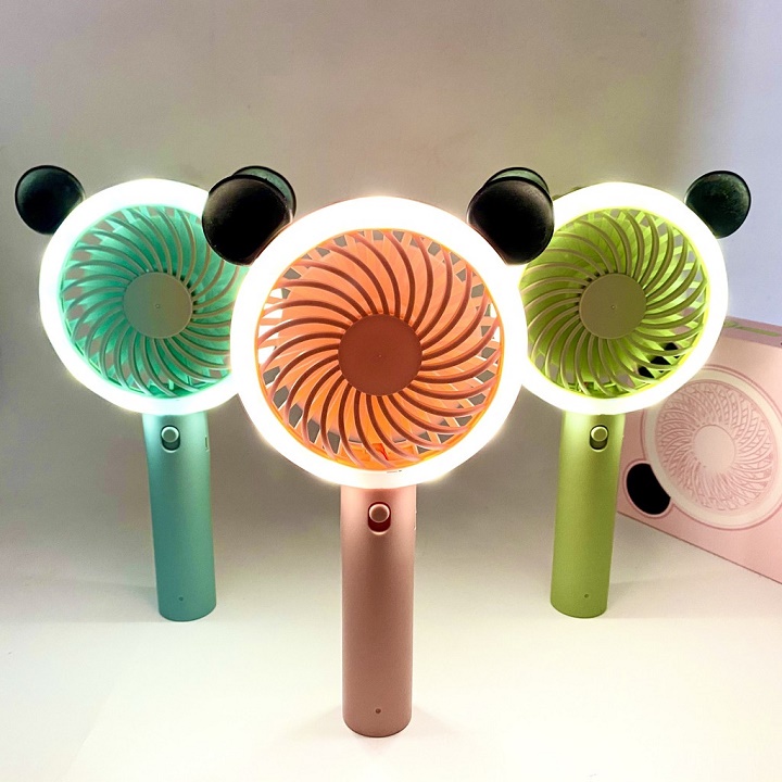 - Quạt cầm tay mini với thiết kế tai gấu xinh xắn phù hợp mới mọi lứa tuổi. Chất liệu nhựa ABS kết cấu bền, chịu được lực