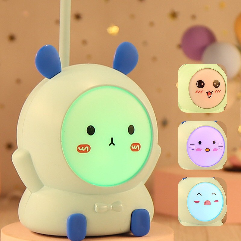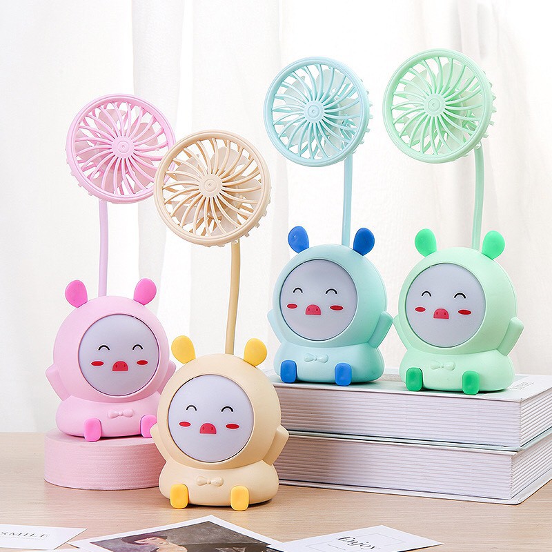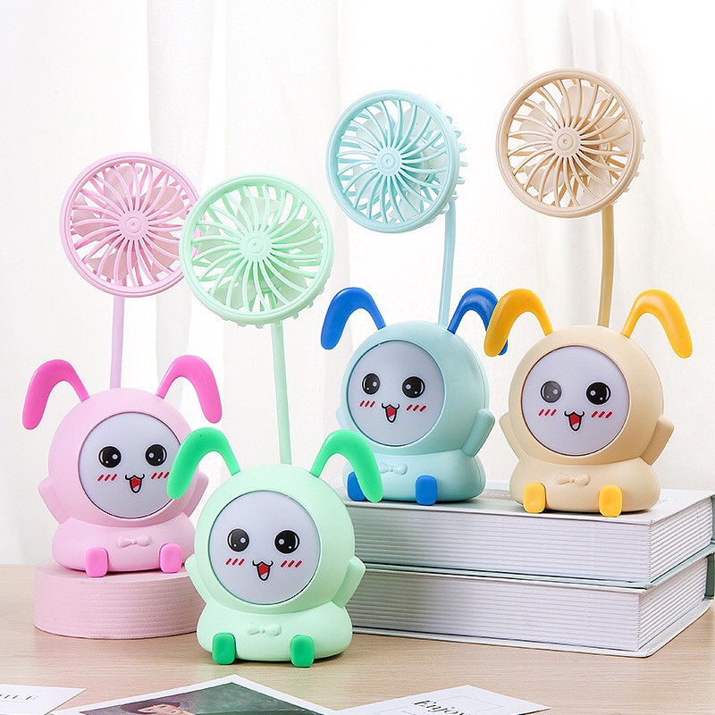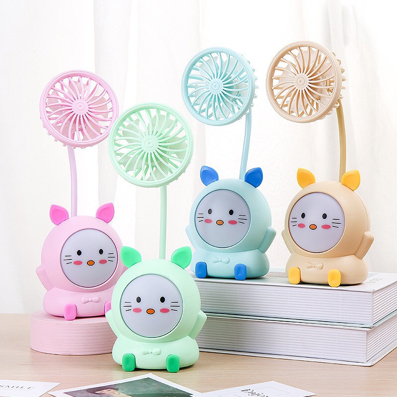 Quạt cầm tay mini tích điện để bàn có đèn đổi màu nhiều hình dễ thương, Quạt điện mini cầm tay gấp gọn sạc USB