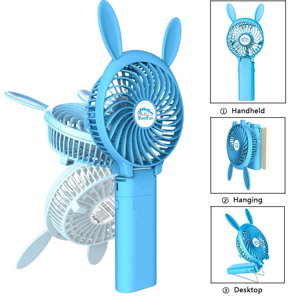 Quạt cầm tay Mini USB hình tai thỏ gấp gọn thông minh với hai mức độ tiện lợi