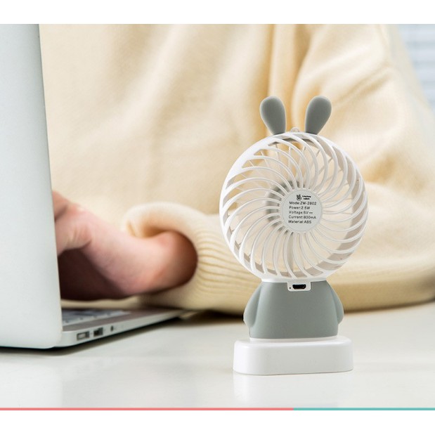 Giới thiệu Quạt Cầm Tay Mini Và Để Bàn ZW-2802 Tai Thỏ Dễ Thương Nhỏ Gọn Nhiều Màu Có Đèn Led
