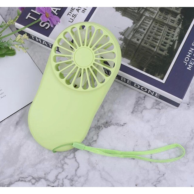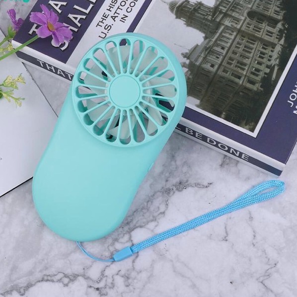 Quạt mini cầm tay có pin kèm dây đeo( xanh lá, xanh dương)Điều chỉnh 3 tốc độ bằng cách bấm liên tục lần bấm tương ứng với từng cấp độ.