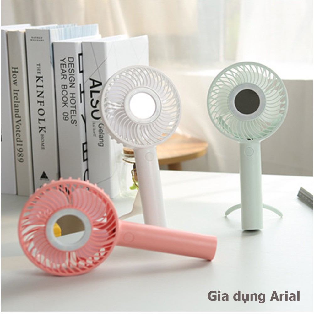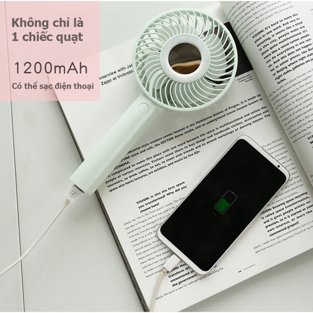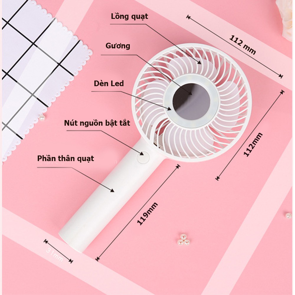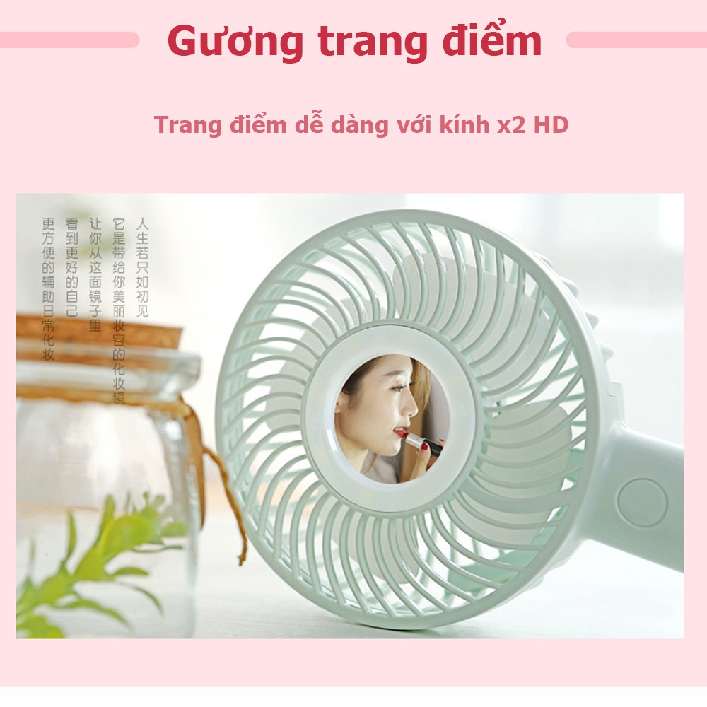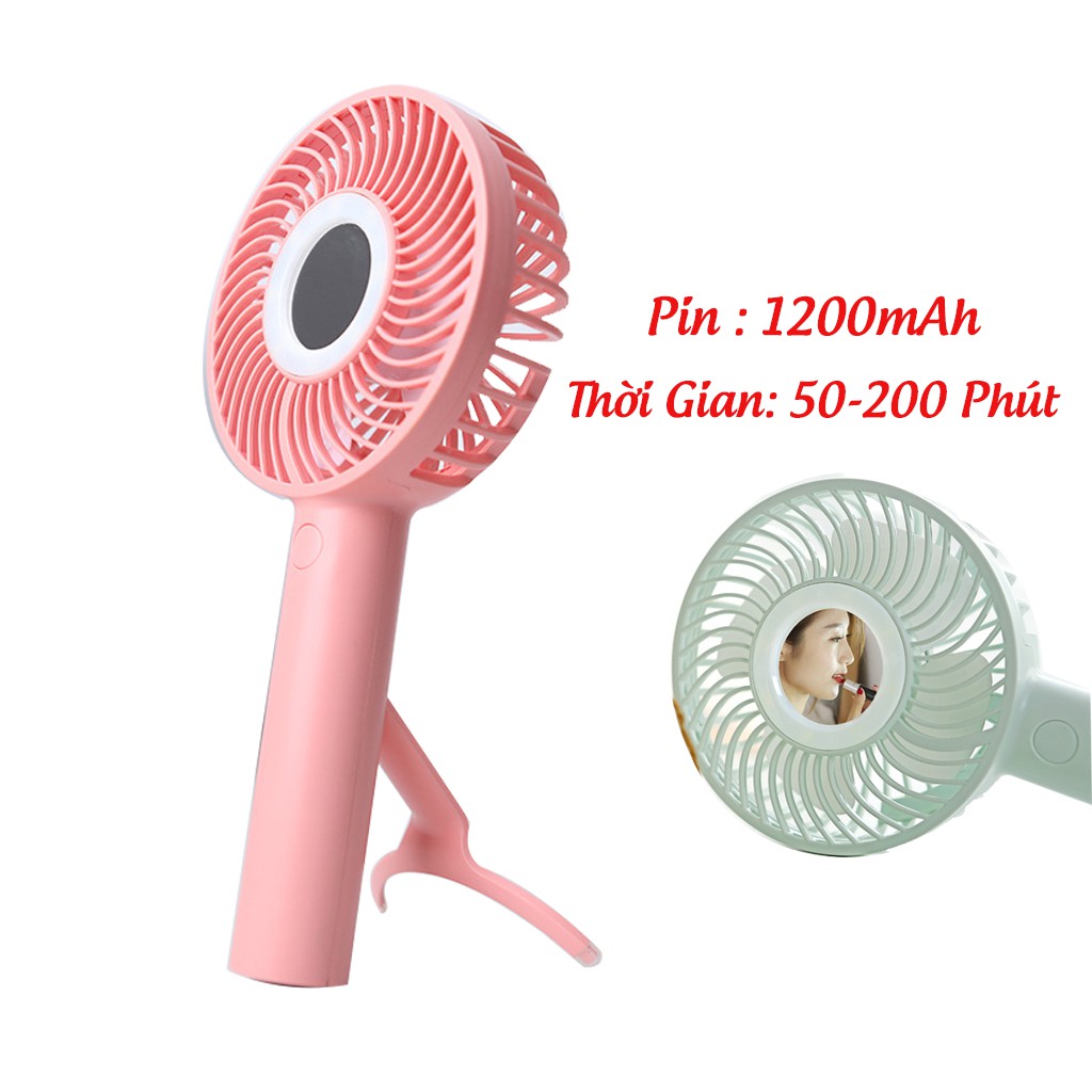 Quạt Cầm Tay Mini Để Bàn 3 Cấp Độ Gió Pin 1200mAh Có Đèn LED Và Gương trang điểm👍Điểm Khác Biệt với sản phẩm giá rẻ : Pin Mạnh + An Toàn + Dùng lâ u 6h