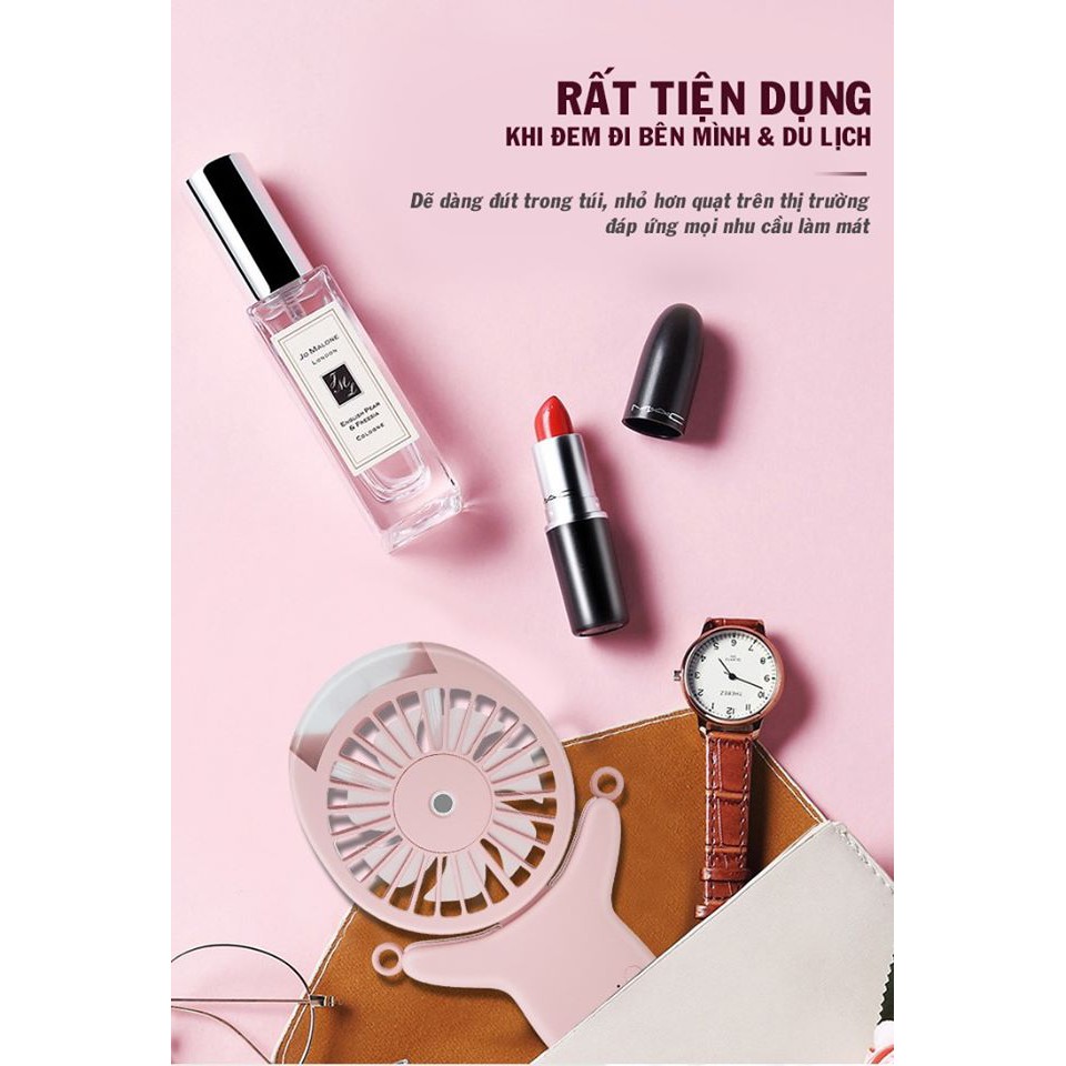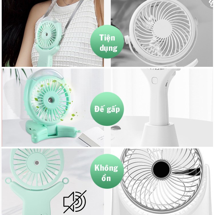Giới thiệu Quạt cầm tay phun sương mini tích điện để bàn đeo cổ du lịch - quat cam tay phun suong mini tich dien