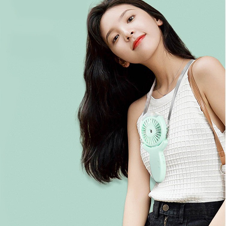 Quạt cầm tay phun sương mini tích điện để bàn đeo cổ du lịch - quat cam tay phun suong mini tich dien