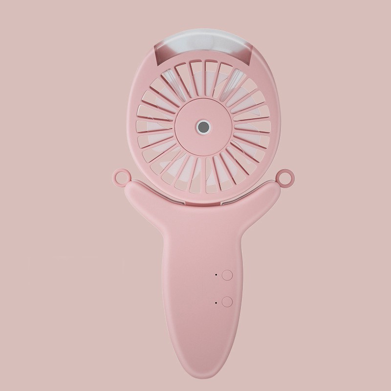 - Quạt cầm tay phun sương kèm theo bình chứa nước, sáp thơm. Khi hoạt động, cánh quạt quay sẽ khiến hơi nước lan tỏa một cách dễ chịu.